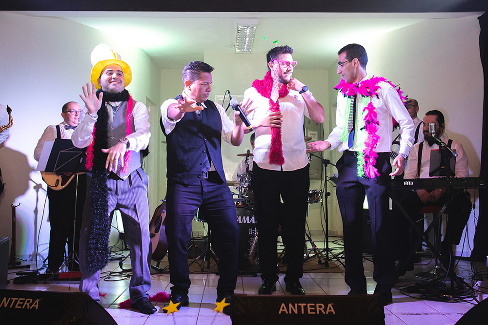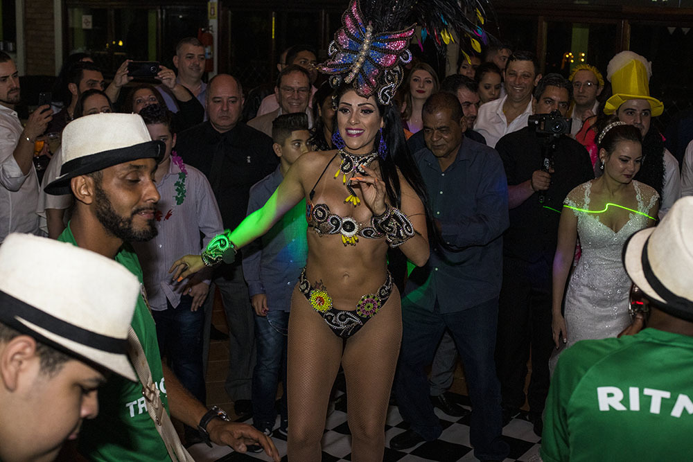 Festa no Clube Campestre na zona norte da cidade de São Paulo, casal caprichou na programação, destacamos a banda e a apresentação da Escola de Samba Tradição.